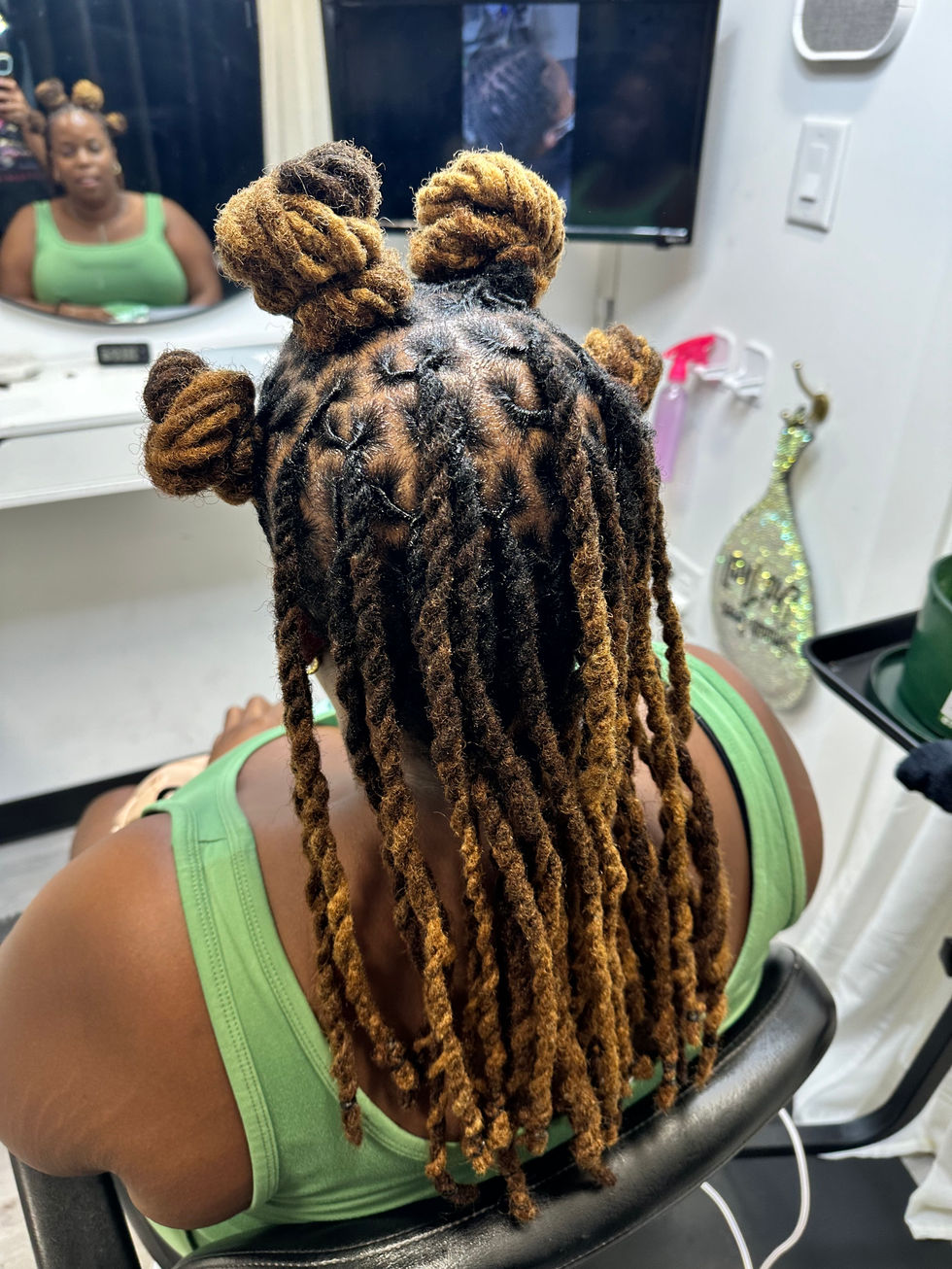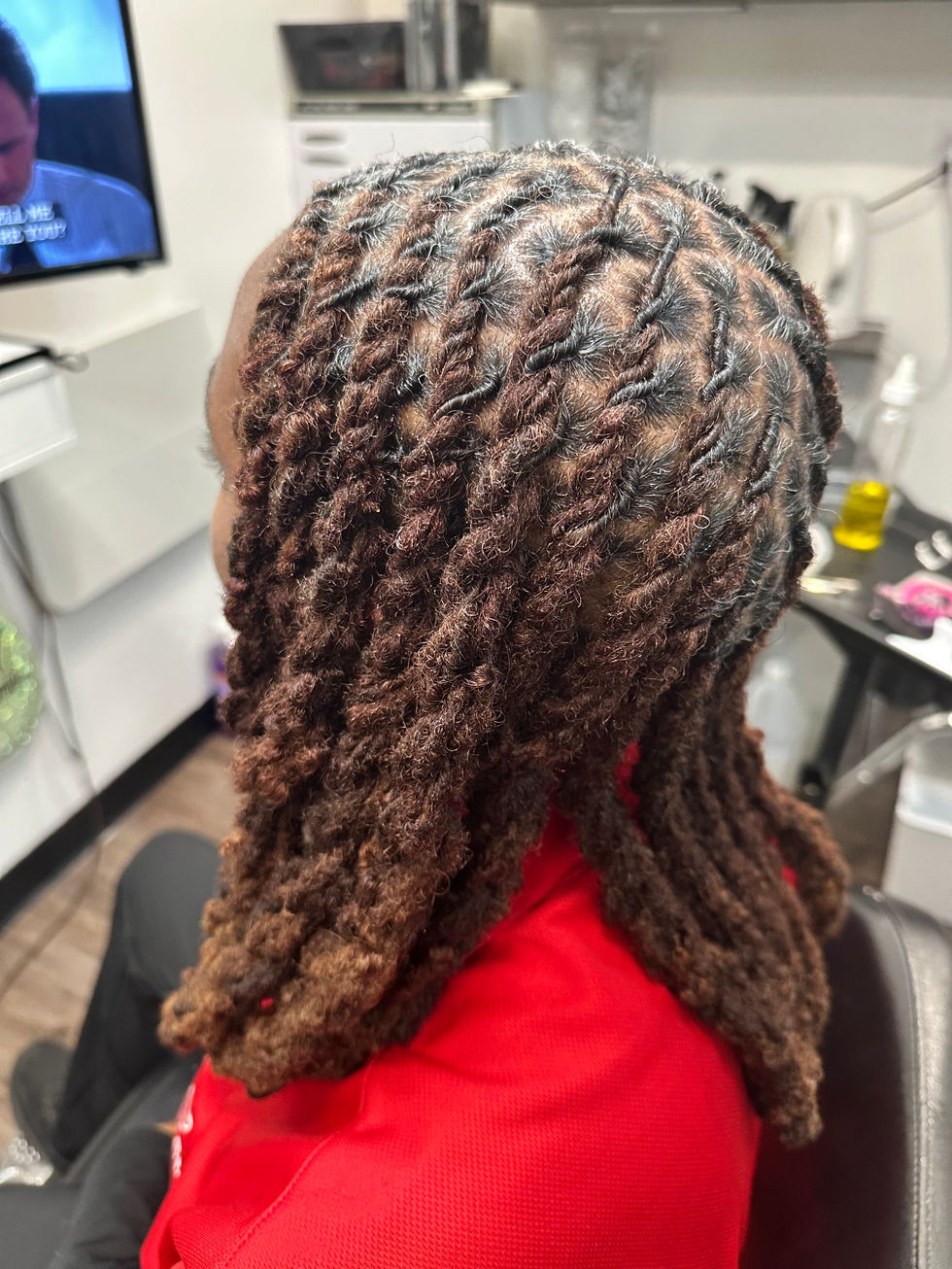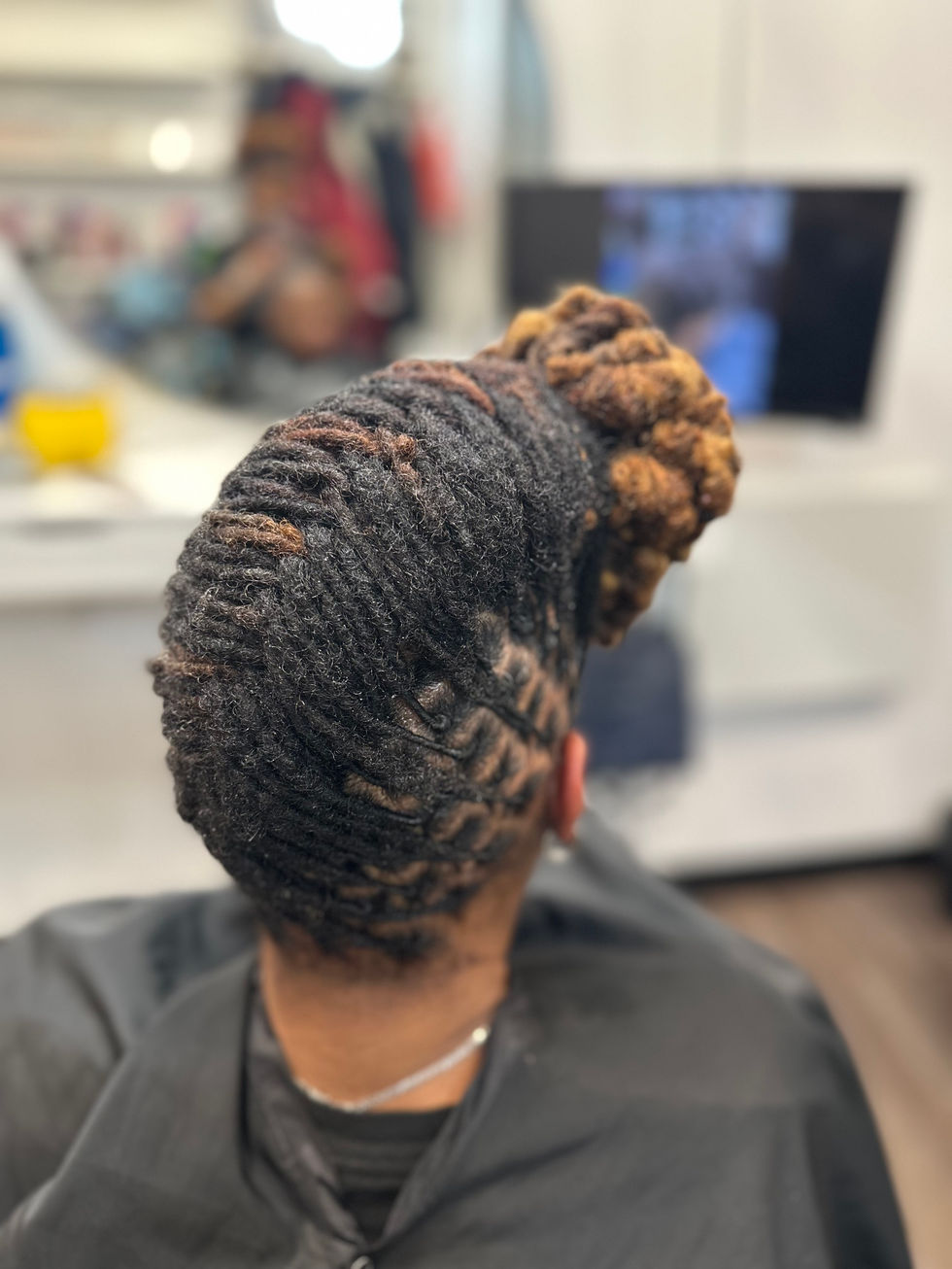 Experience the elegance and beauty of styled locs in a professional salon setting. These images capture the art of loc styling, showcasing the intricate designs and personalized looks created by skilled stylists.